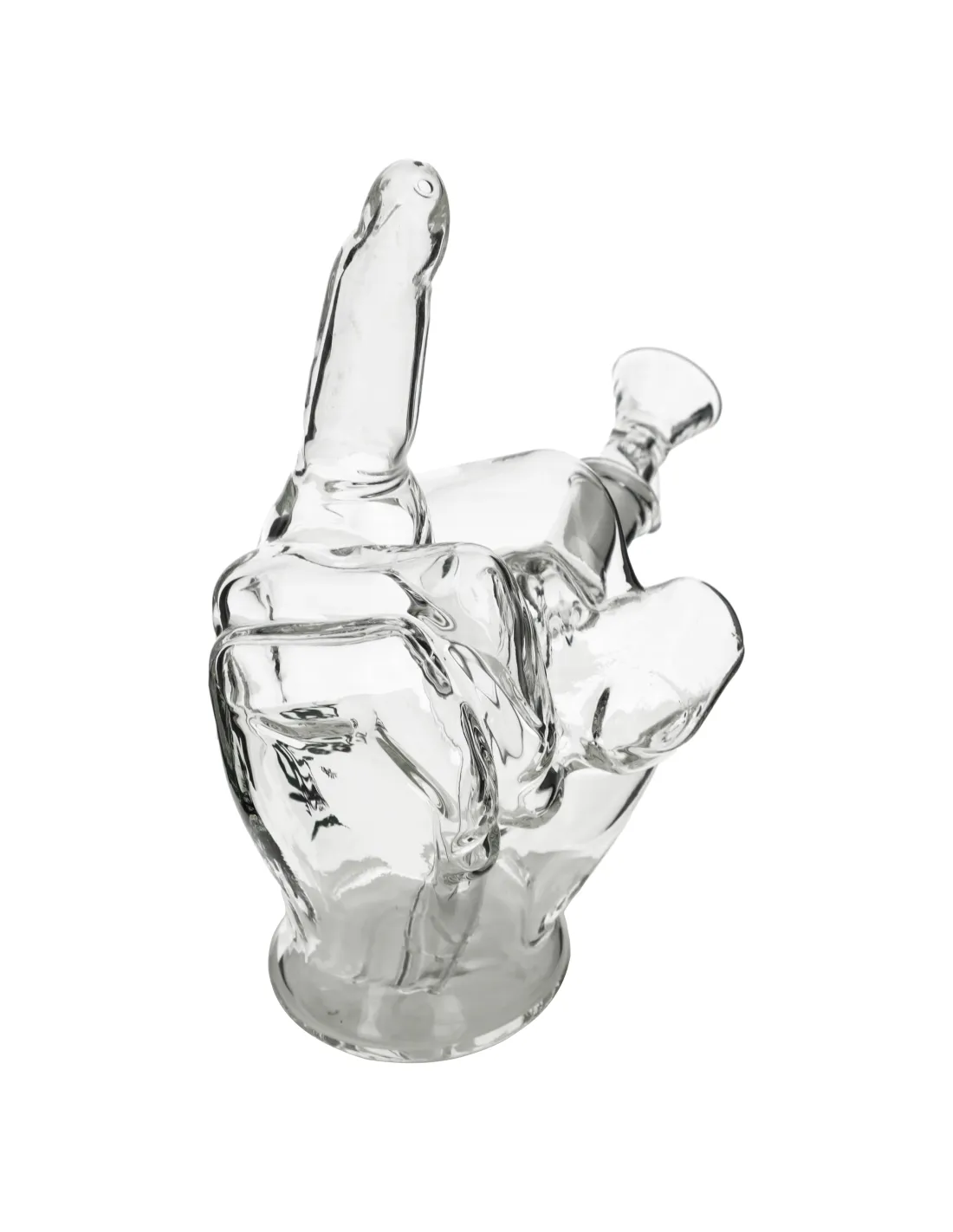 Ergonomiczny kształt inspirowany dłonią zapewnia pewny chwyt i świetną stabilność na blacie. Wyprostowany palec, nadaje bongu zaczepny charakter, a niżej osadzony środek ciężkości ogranicza ryzyko przewrócenia. Delikatnie pochylony ustnik poprawia komfort zaciągania i naturalnie ustawia głowę względem bonga.